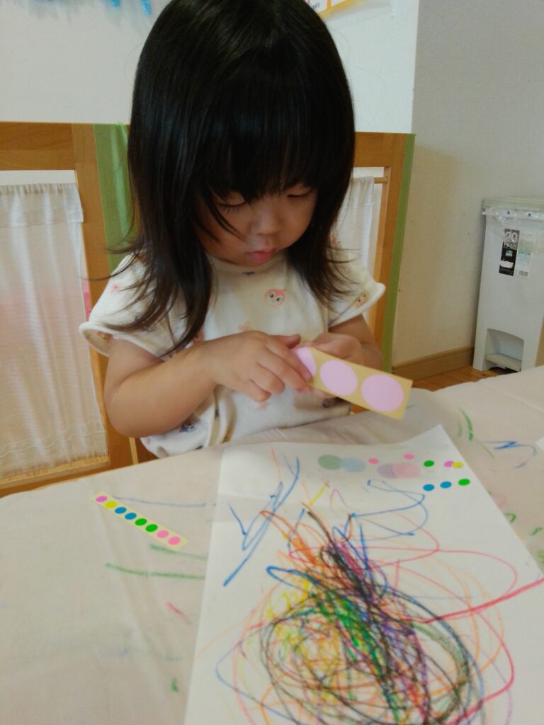 紙いっぱいにシールが貼れると「できたよ、みて✨」ととっても嬉しそうでした😊