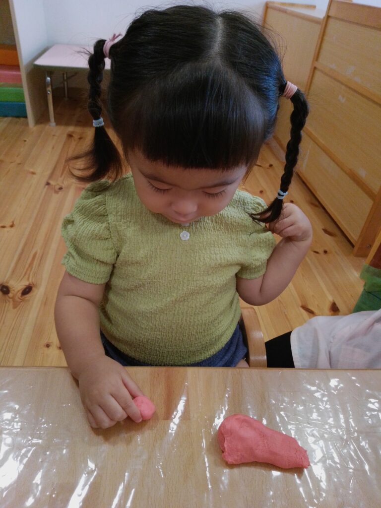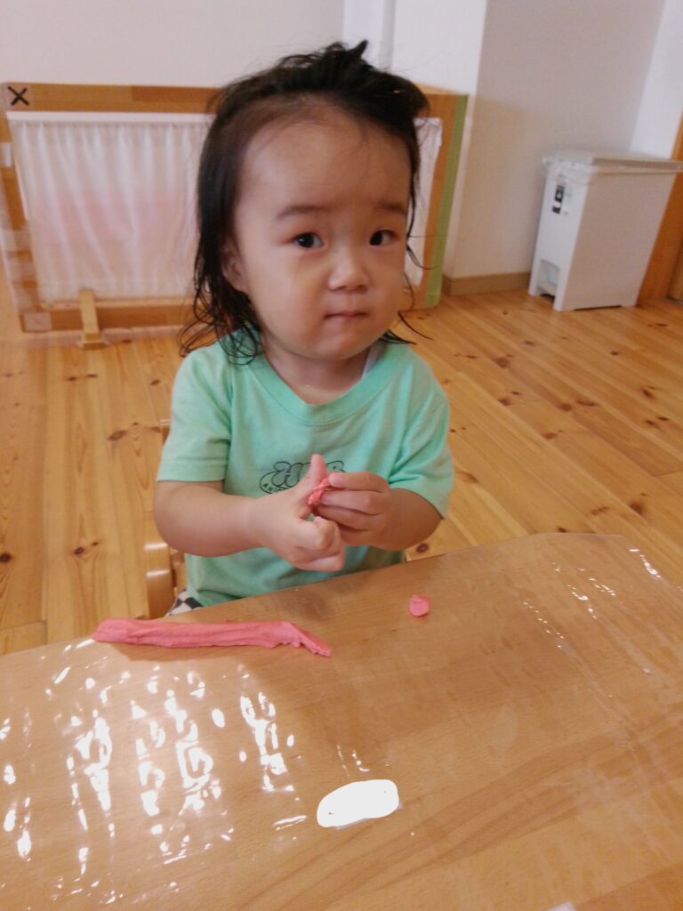 「まんまるにできた!」「にょろにょろへびさん~」などと形の変化を楽しんでいます✨