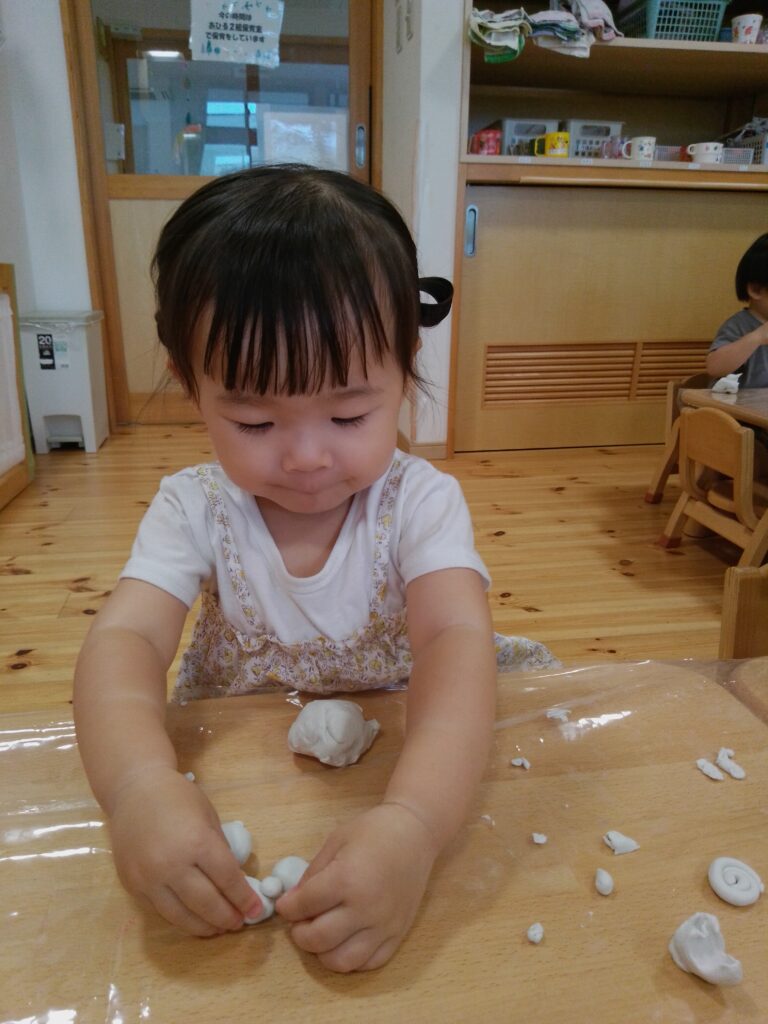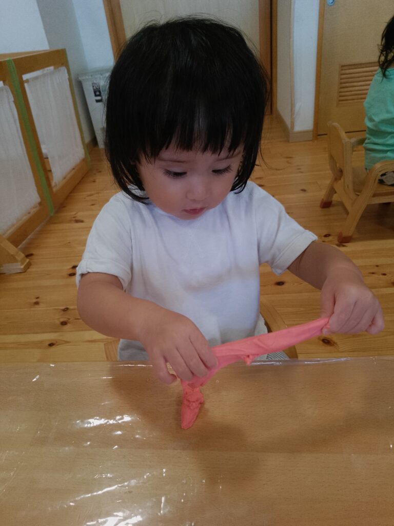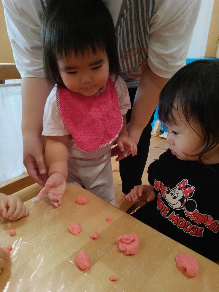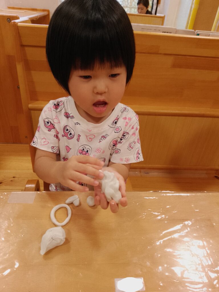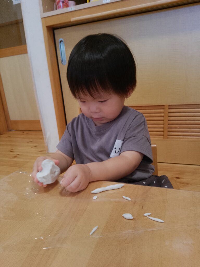 いつもの粘土とは違った感触に驚いたり、夢中になったりしていました🤩