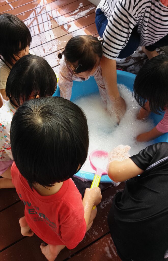 手洗いのようにごしごし~としたり、パチン!と手を叩いてみたりと各々楽しむ姿が見られました。