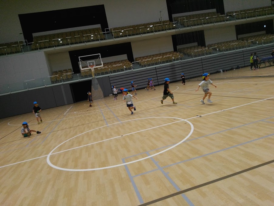 最後にアリーナの中にも特別に入らせてもらい、広い体育館の中を思いきり走り回りました!!