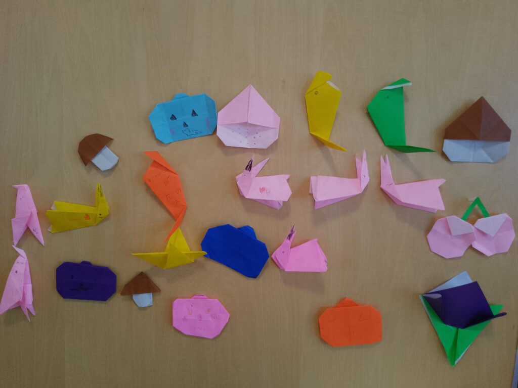 この日は、うさぎや鳥などの動物やきのこ、かぼちゃ、栗など秋ならではのものを折ったりしました。