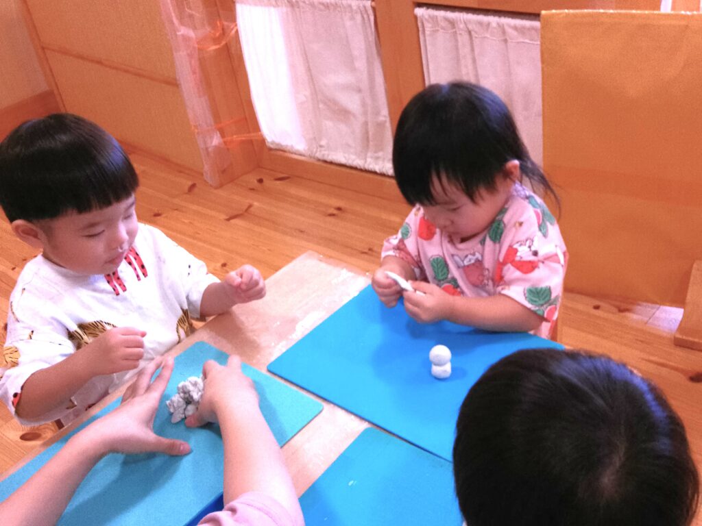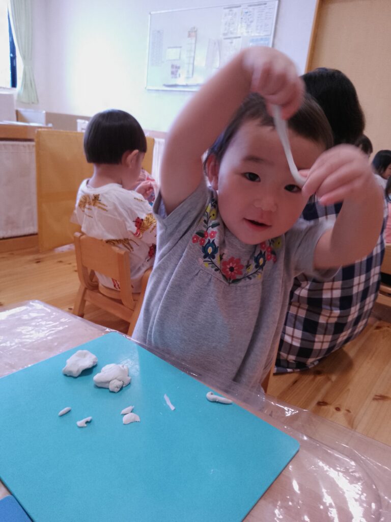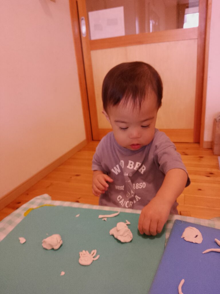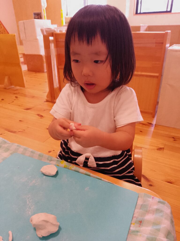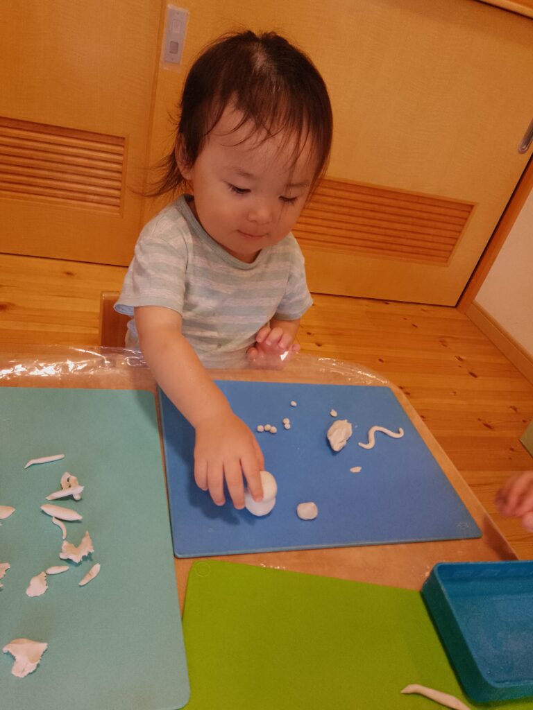 形を作り上げた後の「できたよ~」「見て見て!」という得意げな、満足そうな表情がかわいらしかったです💕