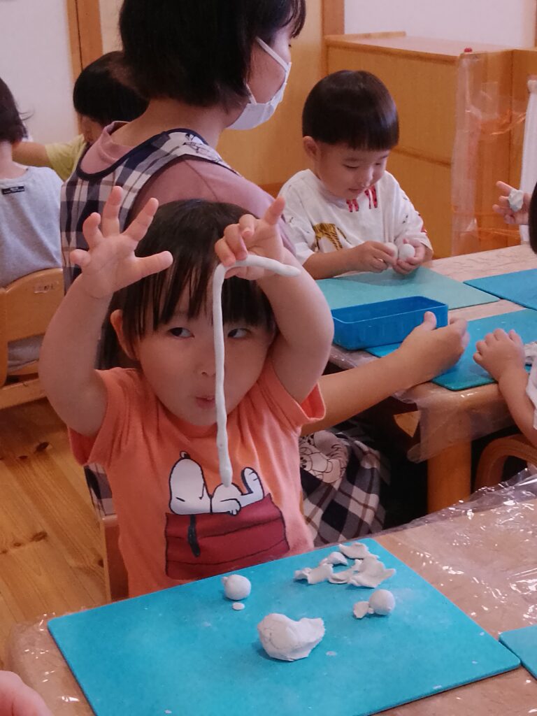 最初は触ったことのない感触にドキドキしたようで、しばらく粘土を見つめ「これはなんだろう?」と観察していた子どもたちでしたが…