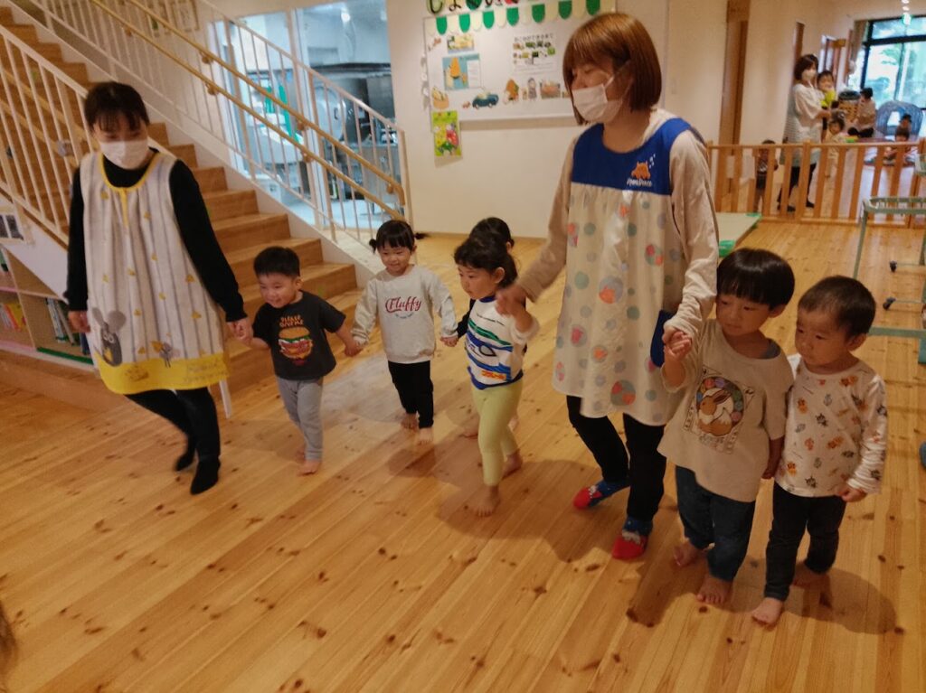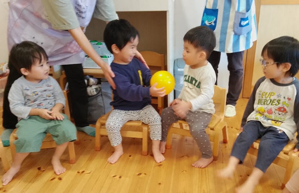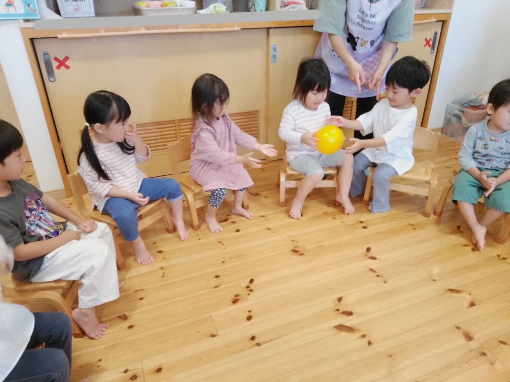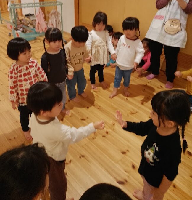 「かーってうれしいはないちもんめ!」「まけーてくやしいはないちもんめ!」と、保育者が歌うとなぜか子ども達に大ウケ😂!!覚えるにはちょっと難しい歌ですが、終わった後に口ずさむ子もいましたよ♪