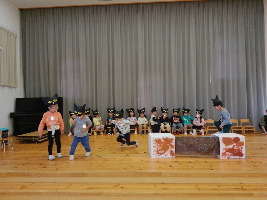 当日は、大勢のお客さんの前に立つと、緊張で普段通りにはならない姿も見られるかもしれませんが、「ねこのピート だいすきなしろいくつ」の世界に入って、みんなで劇ごっこを進めてこれたことが伝わるといいなと思っています💕
