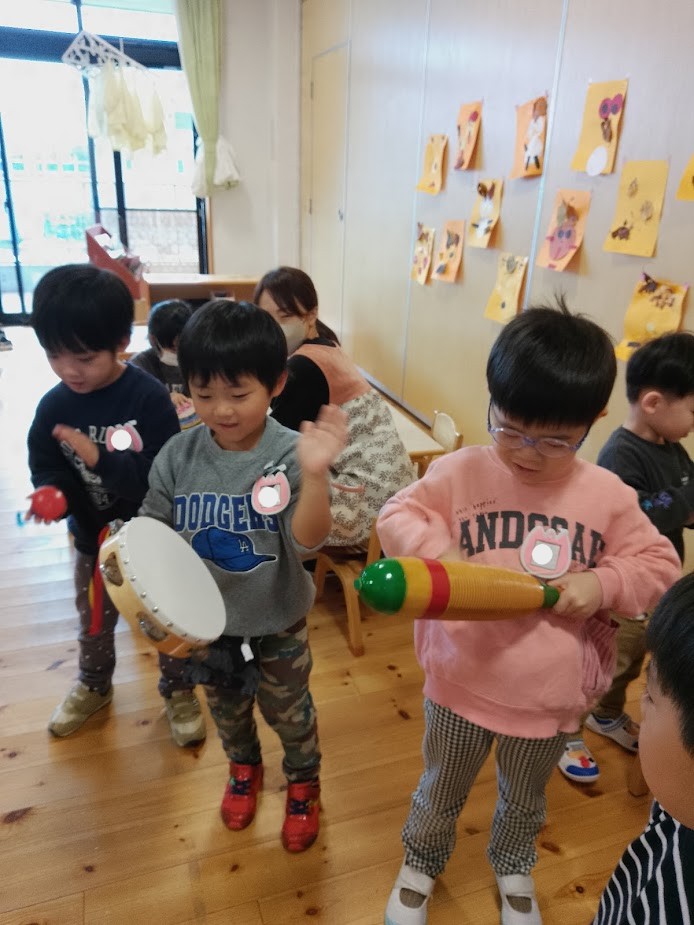 年長組のお兄さんお姉さんの合奏を見て、刺激をもらった子どもたちは、”楽器”にも興味が・・・✨