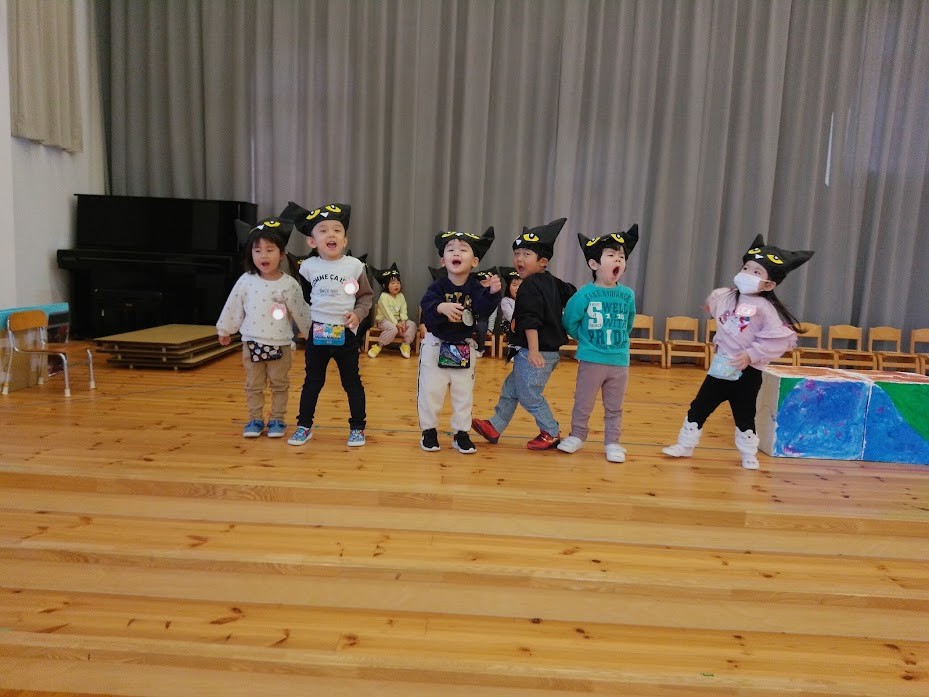 うさぎ1組は、子どもたちが大好きな「ねこのピート」の絵本で劇ごっこをします😊