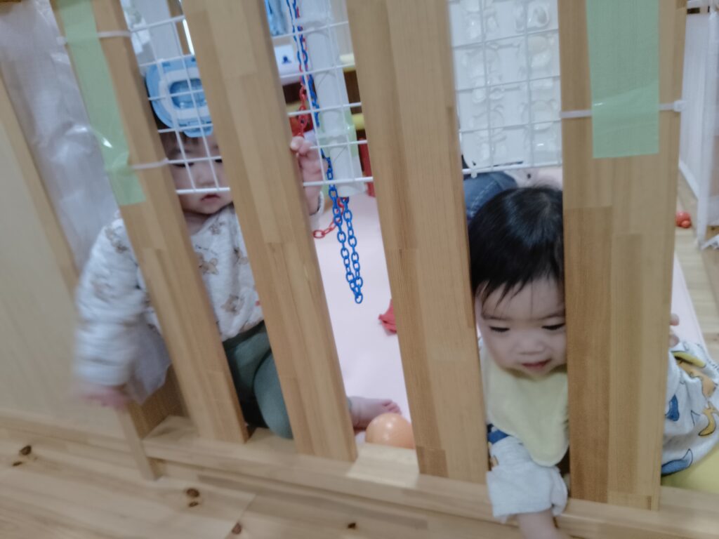 保育者が準備をしていると、「なに?なに?」と覗いているよ✨