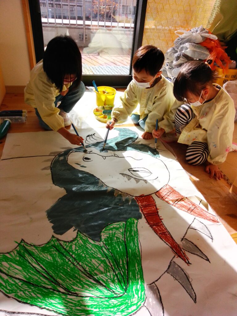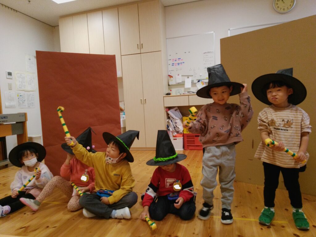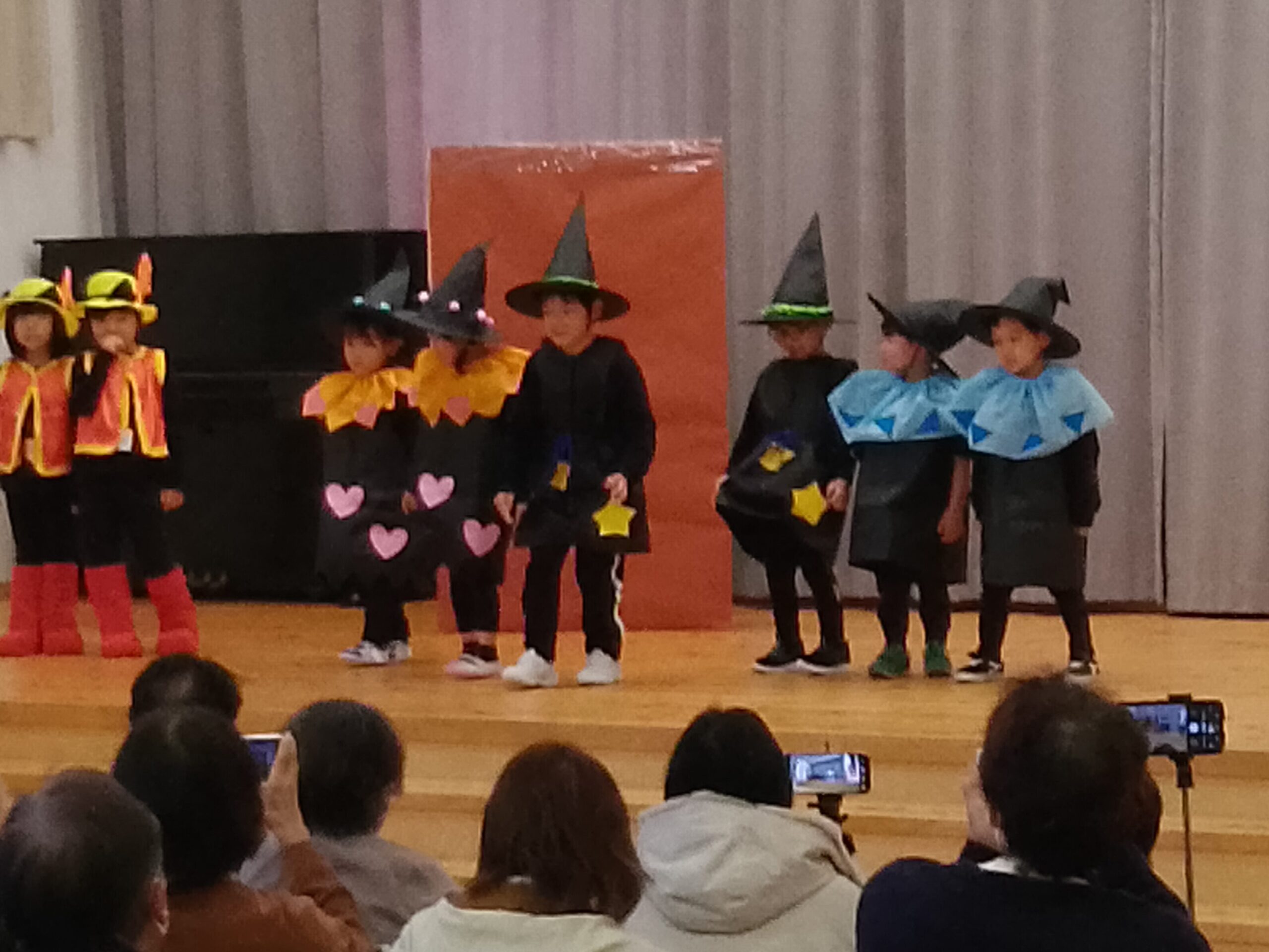 11月29日に発表会がありました。きりん1組は劇ごっこでみんなが大好きなわんぱくだんの絵本シリーズから「わんぱくだんのまじょのやかた」を行いました。