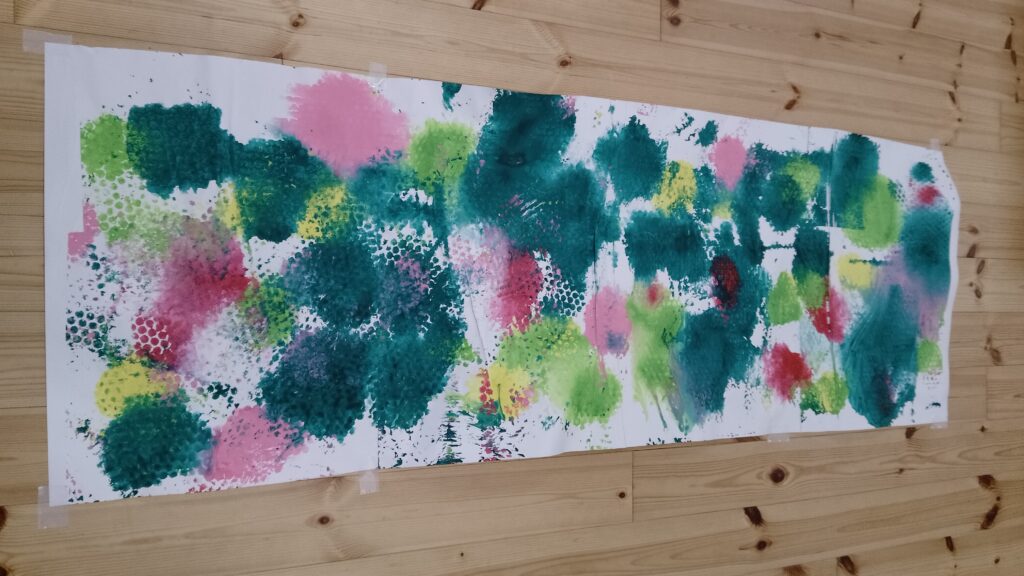 そして11月に楽しんだ感触遊び!みんなが作った色鮮やかな画用紙で完成したのは、、、