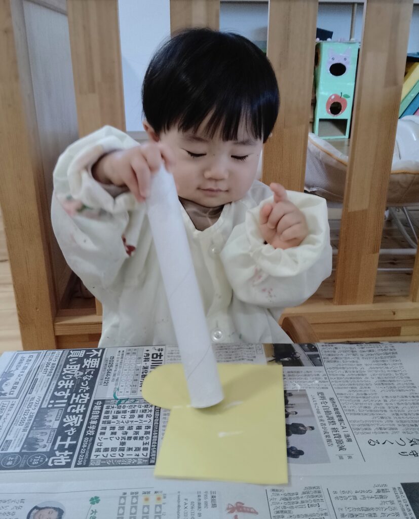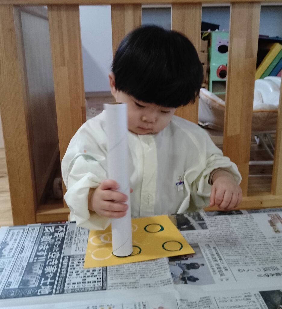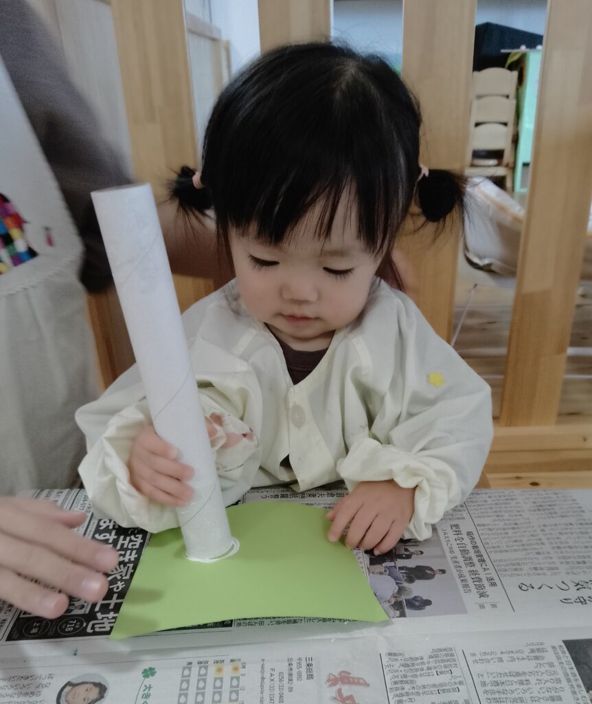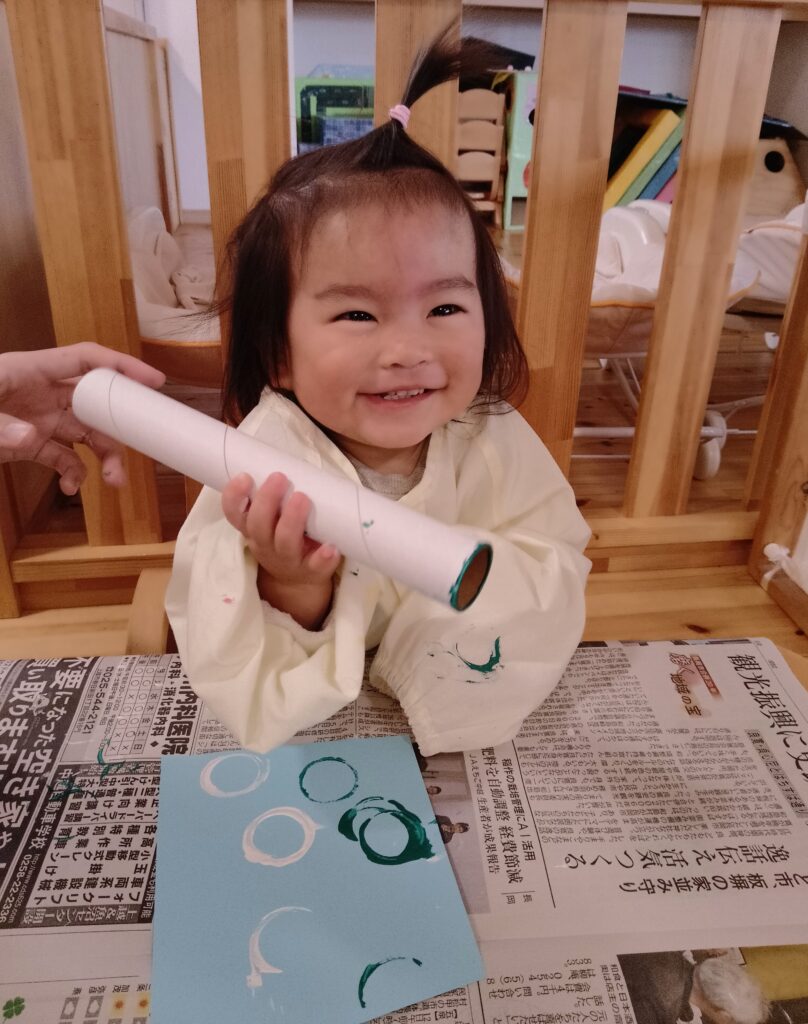 クリスマスツリーでした!🌲🔔自分が作った飾りを見つけにっこり嬉しそうにしたり、朝登園のときにお母さんお父さんに「見てみて~!」とツリーを指差し伝えたりと可愛らしい姿があります!