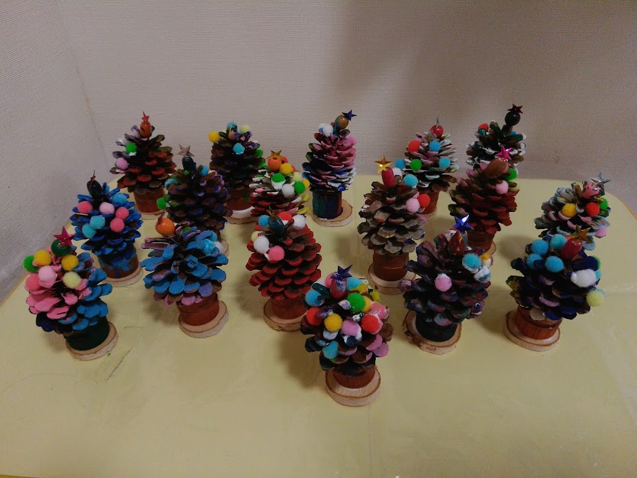 かわいいまつぼっくりのクリスマスツリーになりました😆