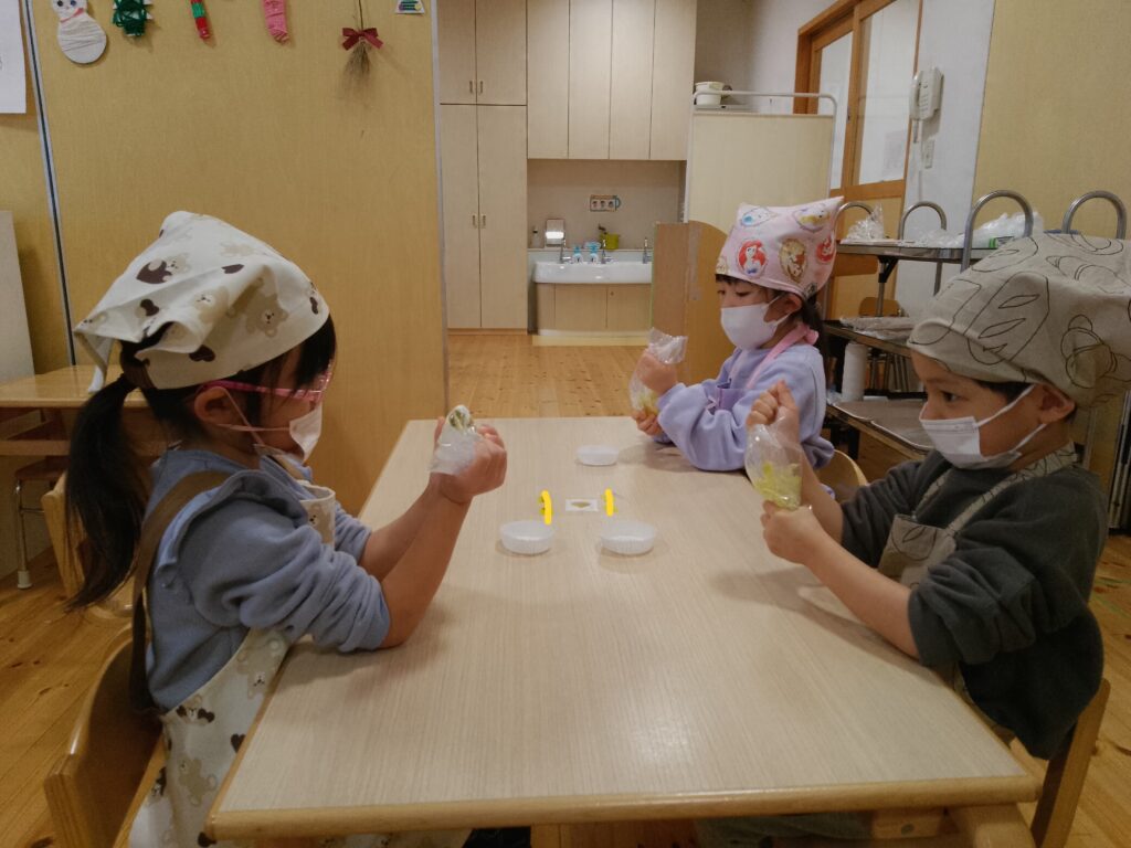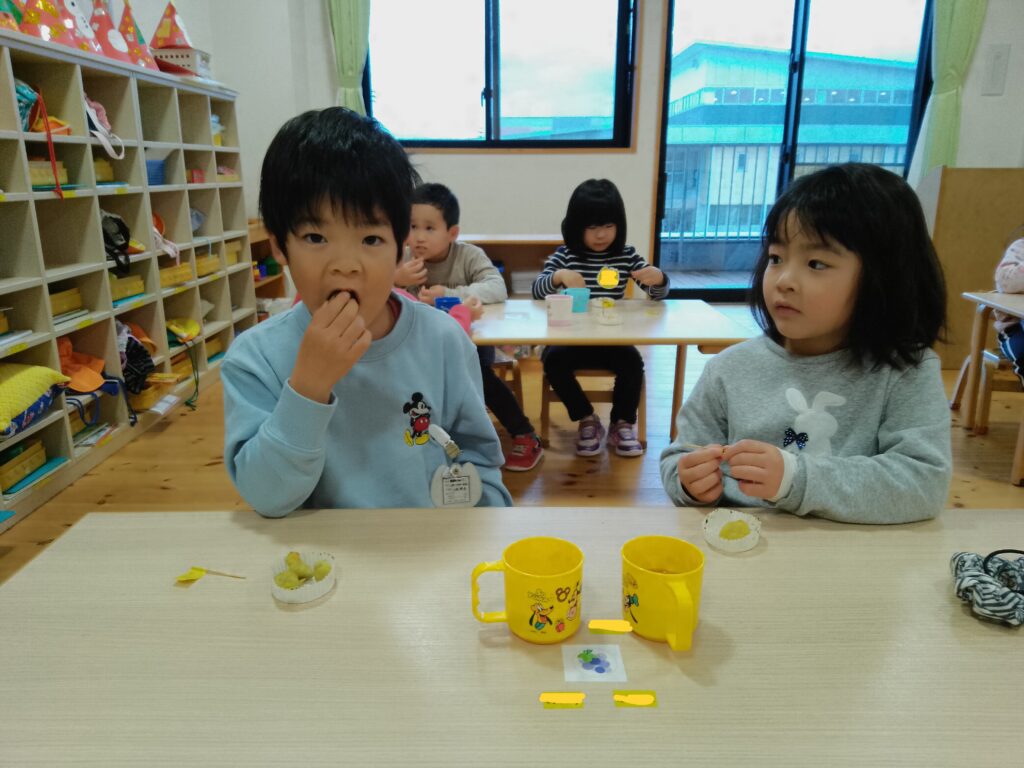 給食室で焼いてもらい、おやつにみんなでおいしく食べました。