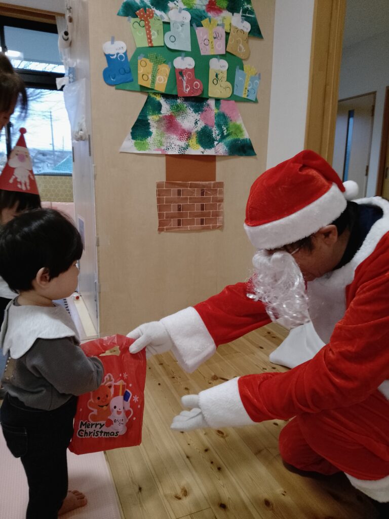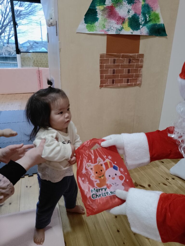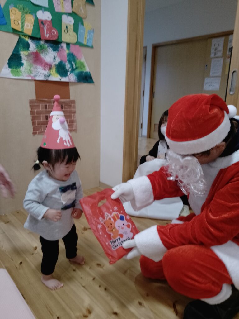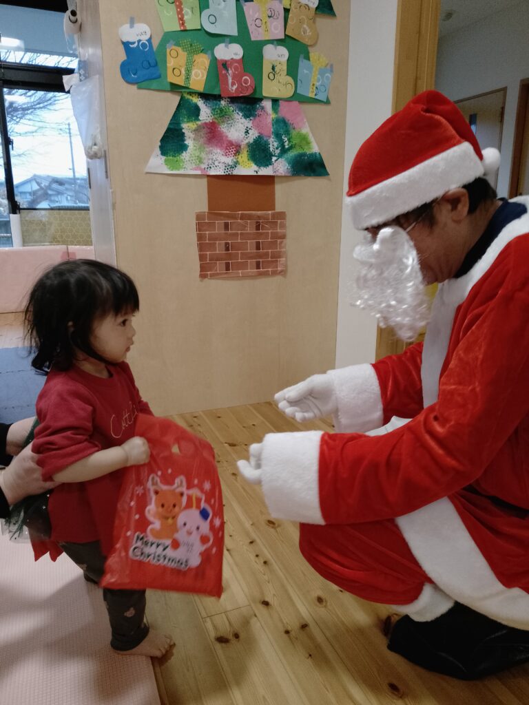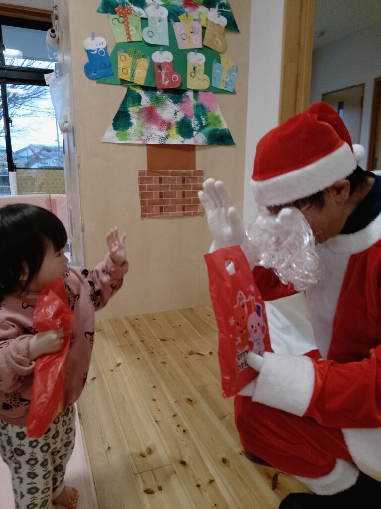お部屋にサンタさんが来てくれて一人ひとりにプレゼントを渡してくれました!