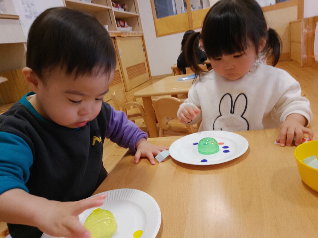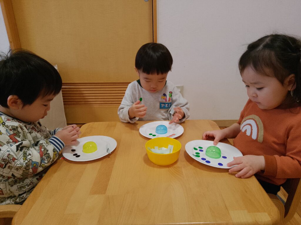 同じところに何個も貼る子や、色を交互に貼る子、持ち手に貼る子など、装飾にも個性が出ていました😊