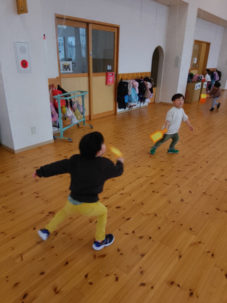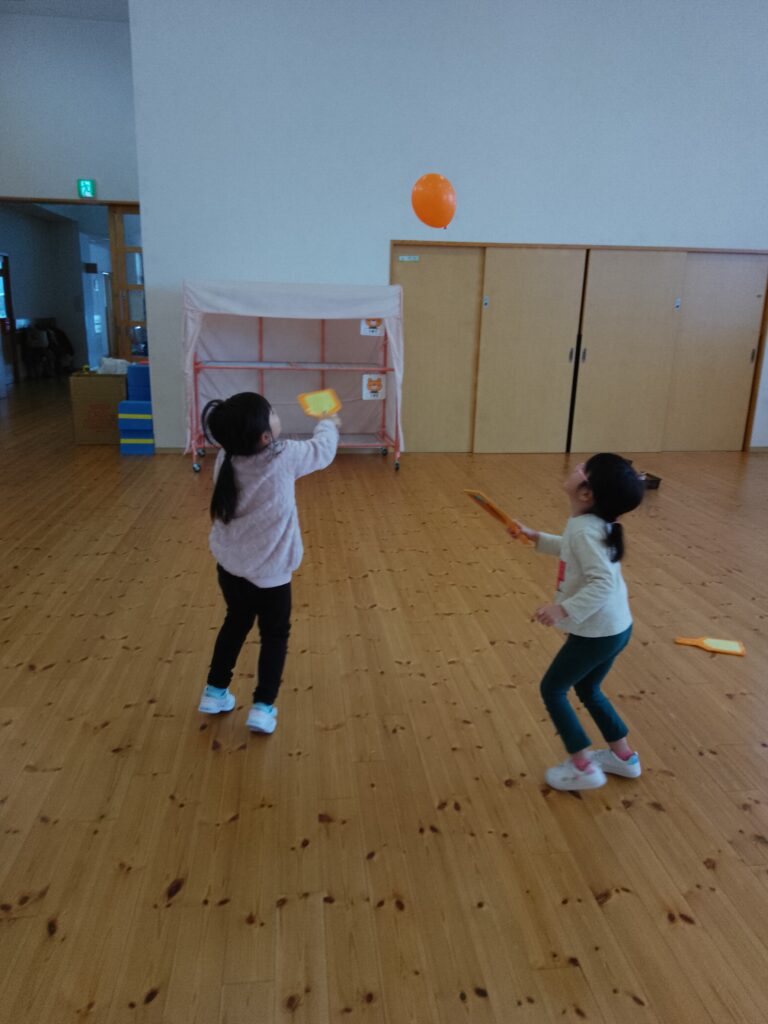 羽根つきも友達と楽しみました。羽根が難しい子は風船で楽しんでいましたよ。