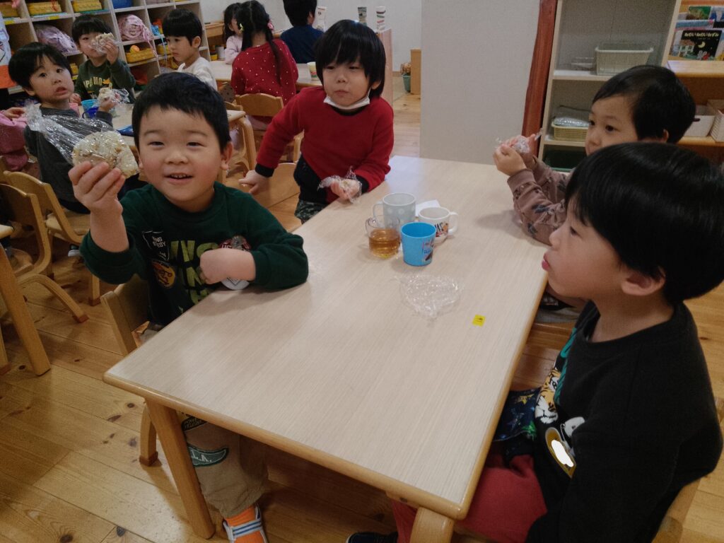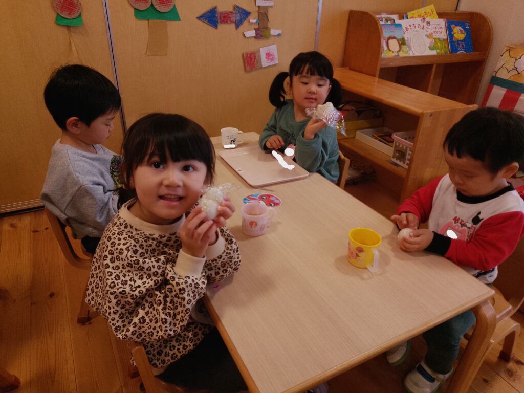 異年齢児おやつ交流の日も、おにぎりを握りました!