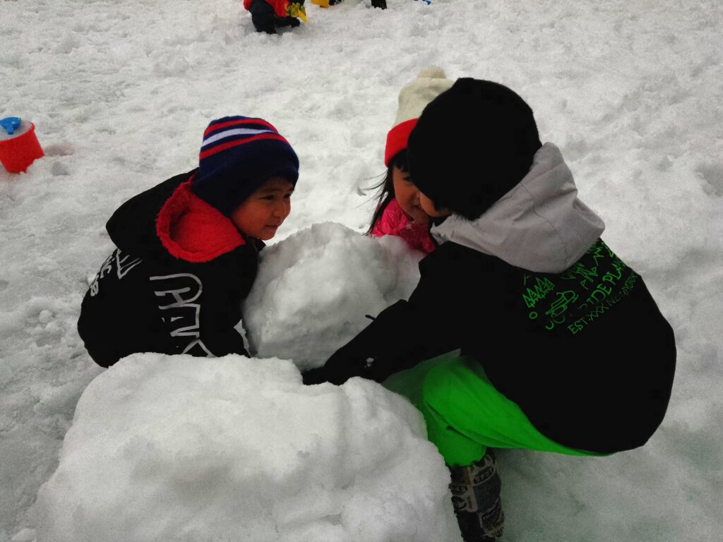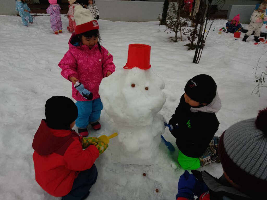 雪遊びをすると、スコップで雪山をつくったり、雪玉を作ったり・・・様々な遊び方で楽しみました!