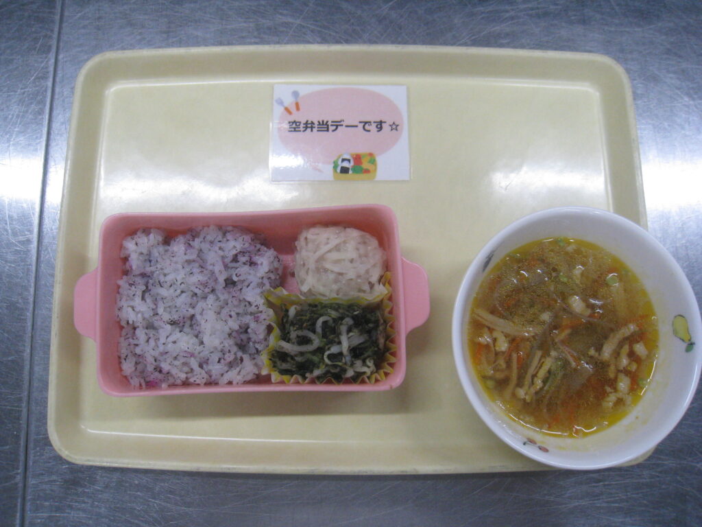 今日は「空弁当デー」なのでお弁当箱に入っています。お弁当のご準備ありがとうございました。
