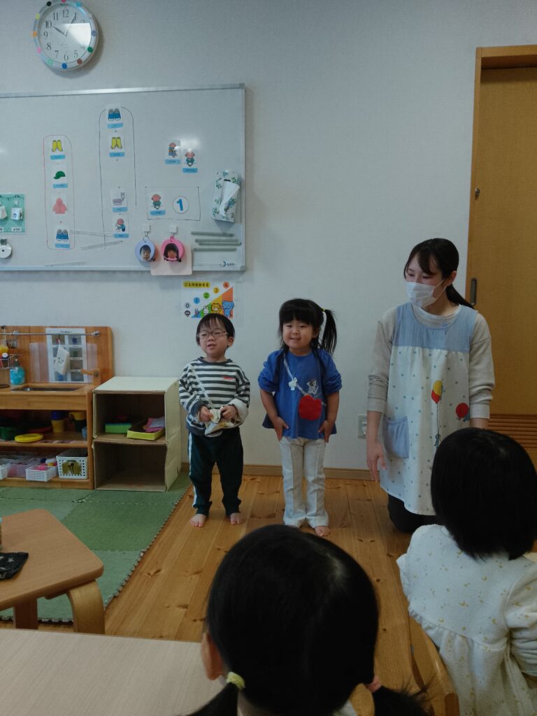 いざみんなの前に立つと恥ずかしそうにする姿もありますが、お友達と一緒にすることで少しずつ自信に繋がればと思っています☆ミ