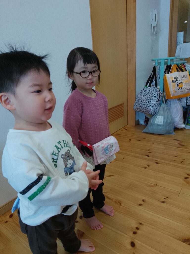 りす2組では、毎日2人のお友達に”お当番さん”をしてもらっています。