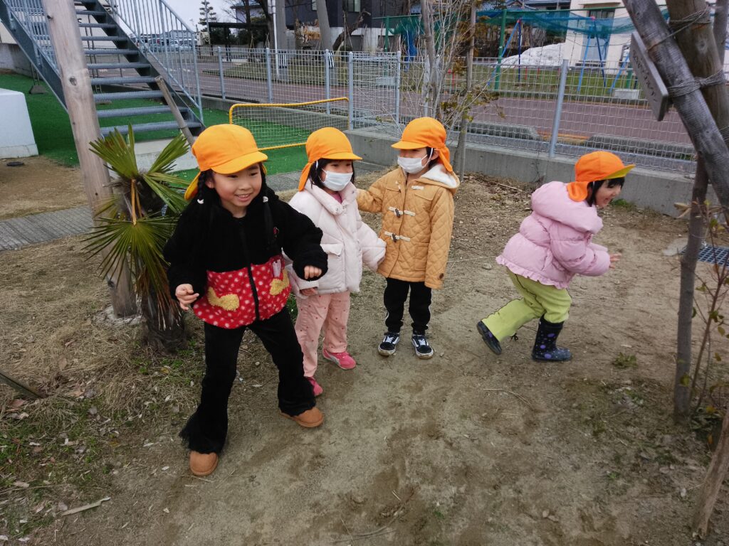 気温も暖かい日が多くなり、3月は園庭に出たり散歩に出掛けたりとたくさん戸外で遊ぶことができました!