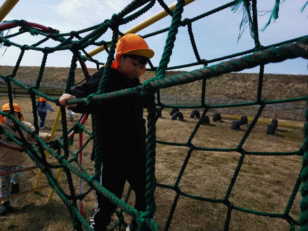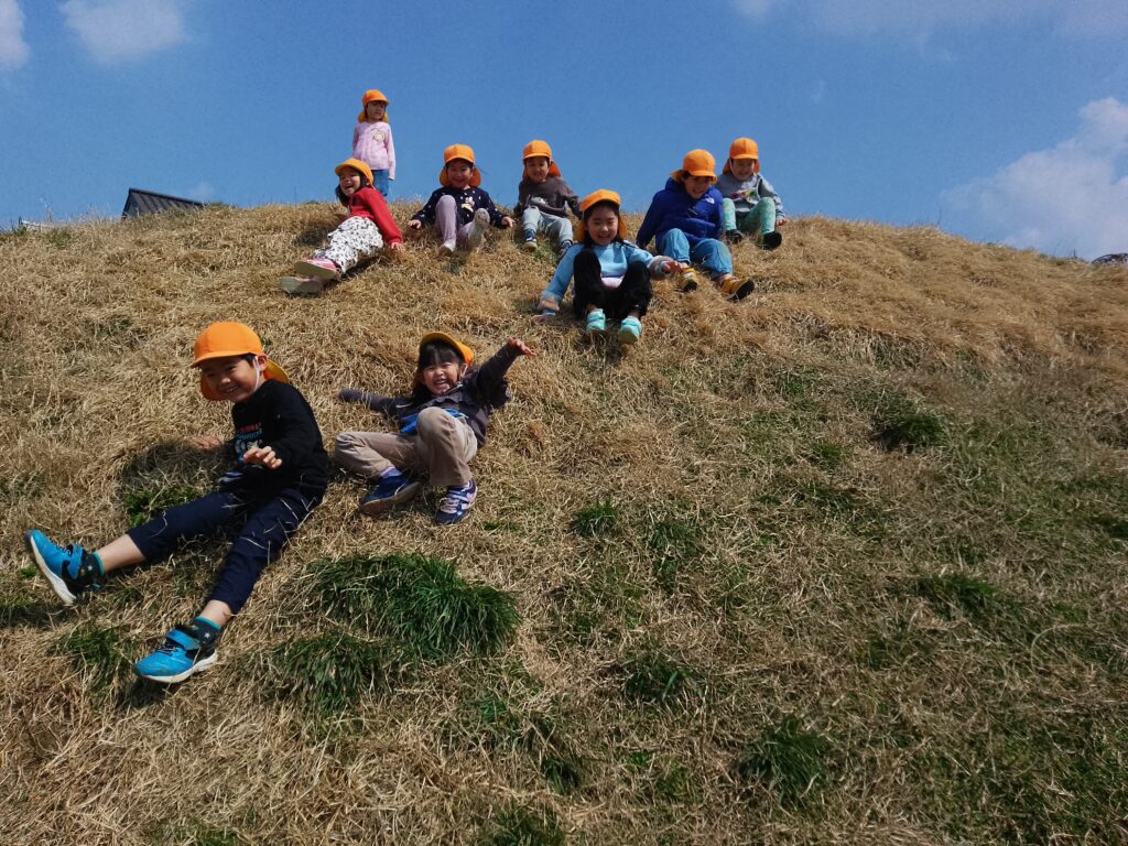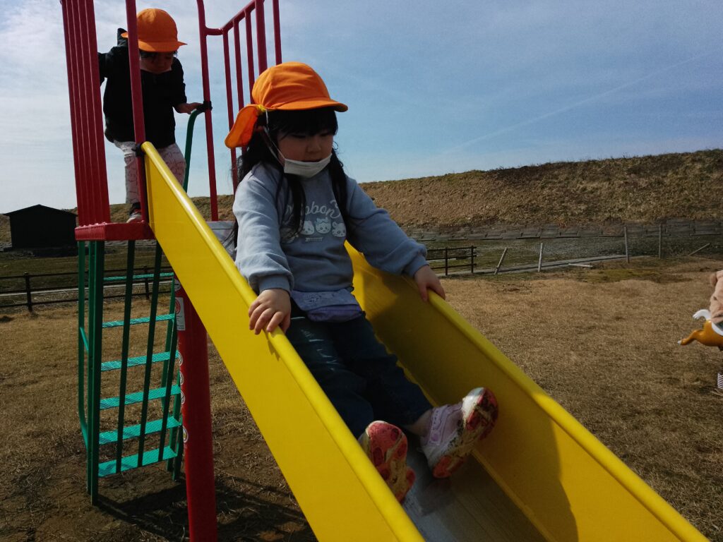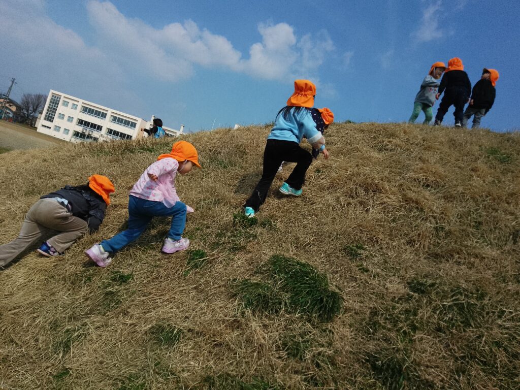 小学校のグラウンドに行った際は、築山に登ったり上から滑ったりしながら遊んでいました。