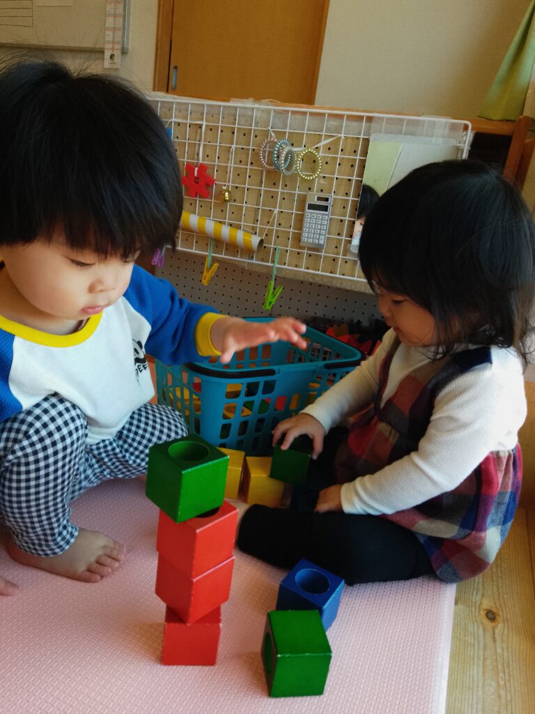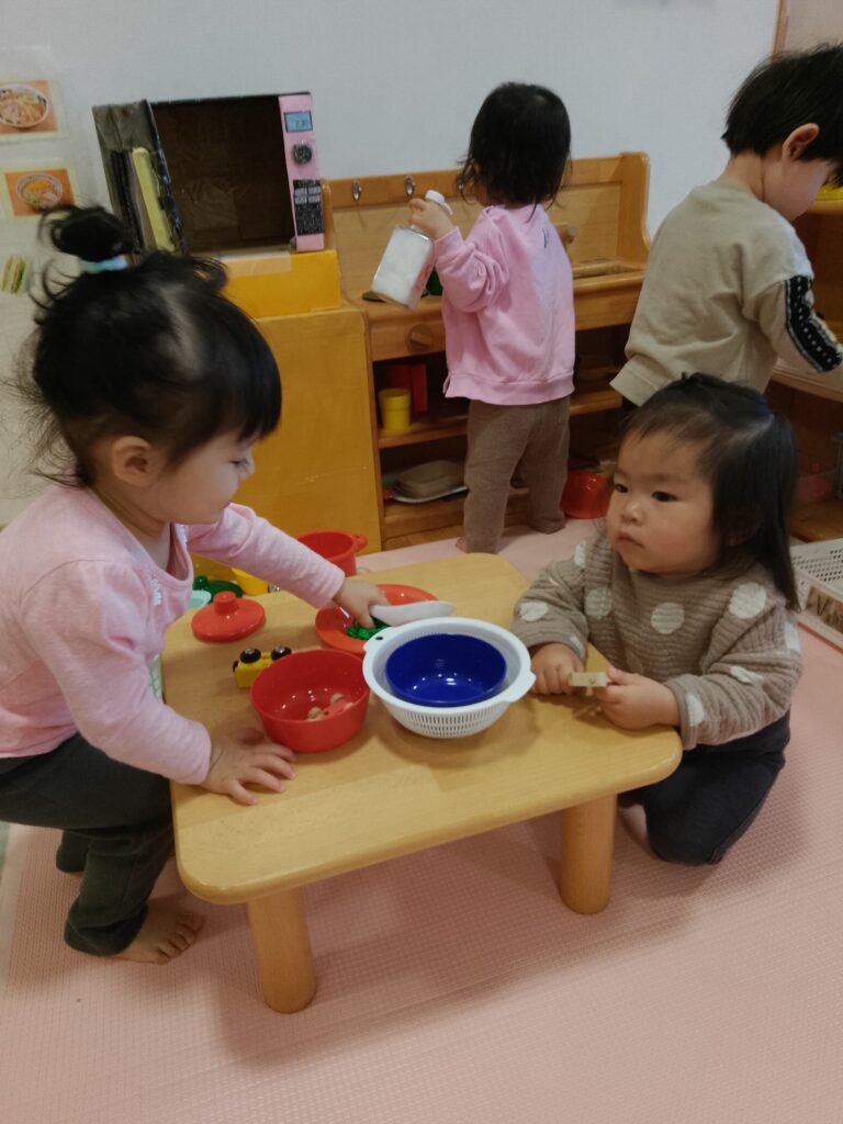 お部屋を散策してコーナーで遊び、それぞれ好きな遊びが見つかってきたようです。