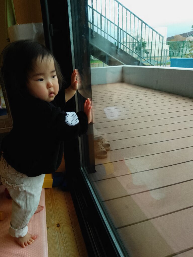 天気のいい日にはお外に出て遊んでいます。ミニ園庭でシャボン玉やボール遊びをしたり、お散歩に出かけたりしていますよ!