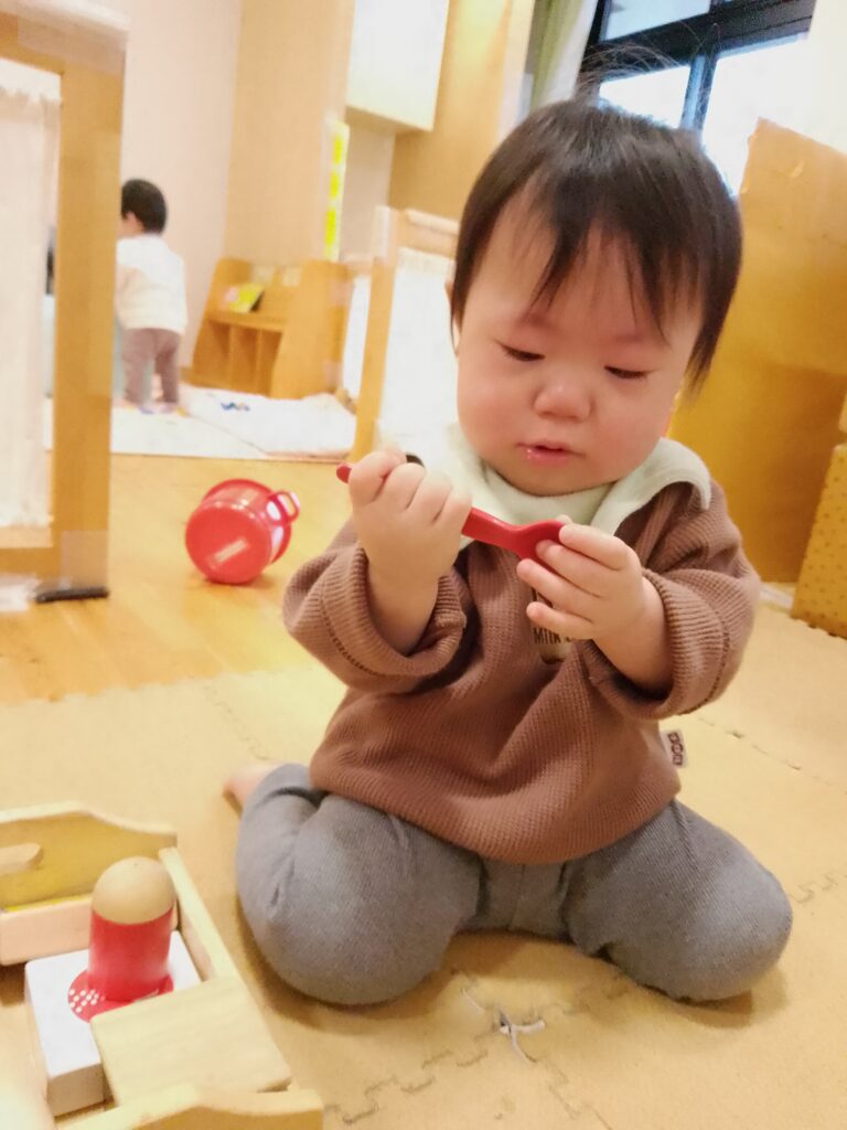 大好きな保護者の方から離れて過ごす不安感から涙する姿もありますが、少しずつ園の雰囲気に慣れ始め、気になったおもちゃで遊んだり、心地よい気候の中、戸外で体を動かしたりして、だんだんと笑顔も見られるようになりました😊これからどんな可愛い姿が見られるか楽しみです!