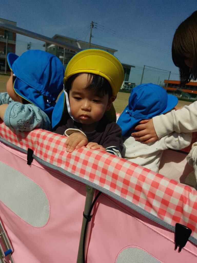 気持ちのよい晴天の日が続き、ミニ園庭や小学校の築山へのお散歩をたくさん楽しみました。