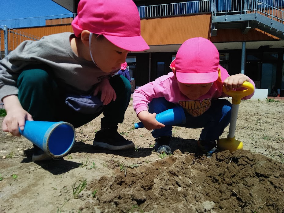 それから、園庭でも、公園でも土の中が気になる子どもたち!!