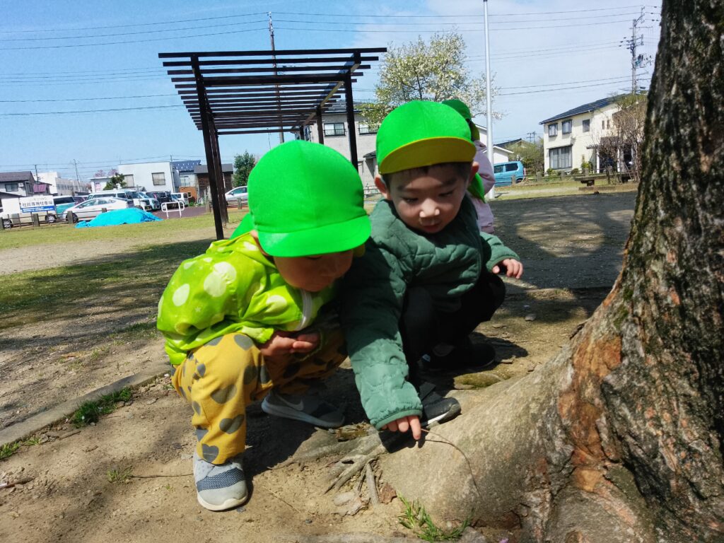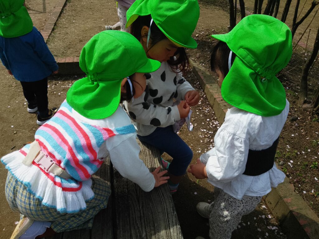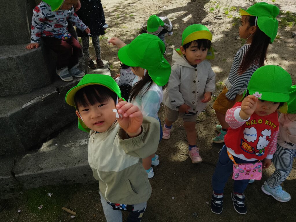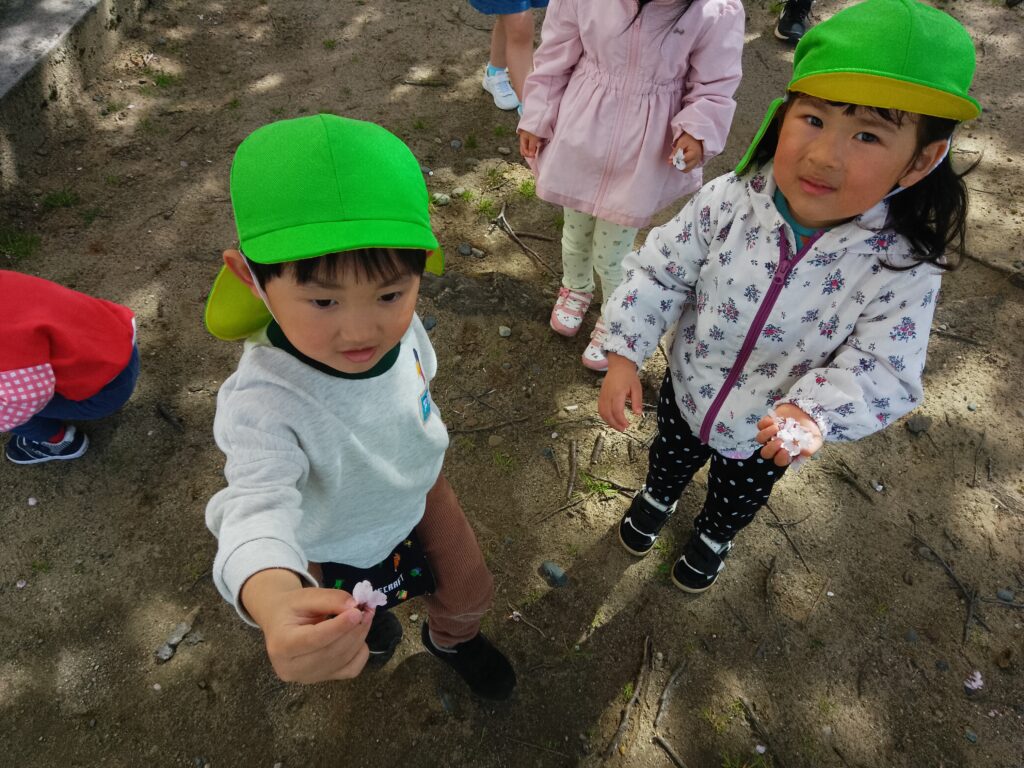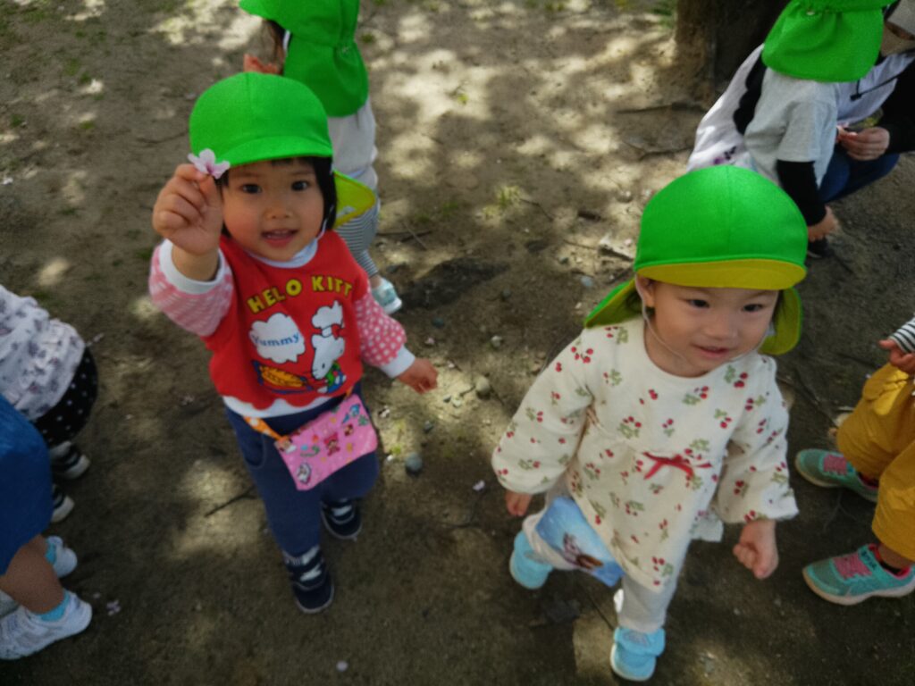 お部屋から見える小学校の桜を見て、「さいてる!」「見に行こうよ!」「明日行かないと!」と桜を見に行くことが楽しみだった子どもたちでした。