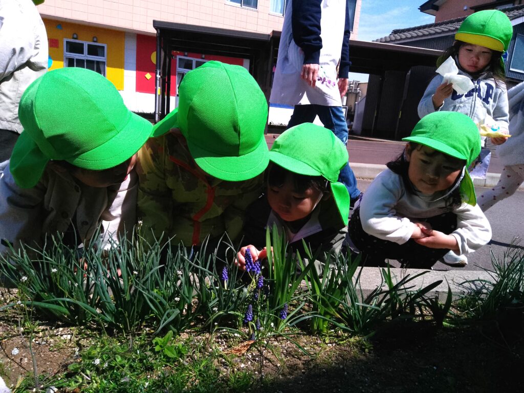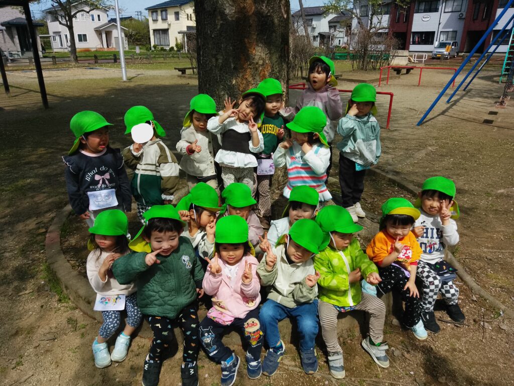お散歩が大好きで、「今日は園庭?」「高見公園がいい!」などと楽しみにしている様子の子どもたちです!